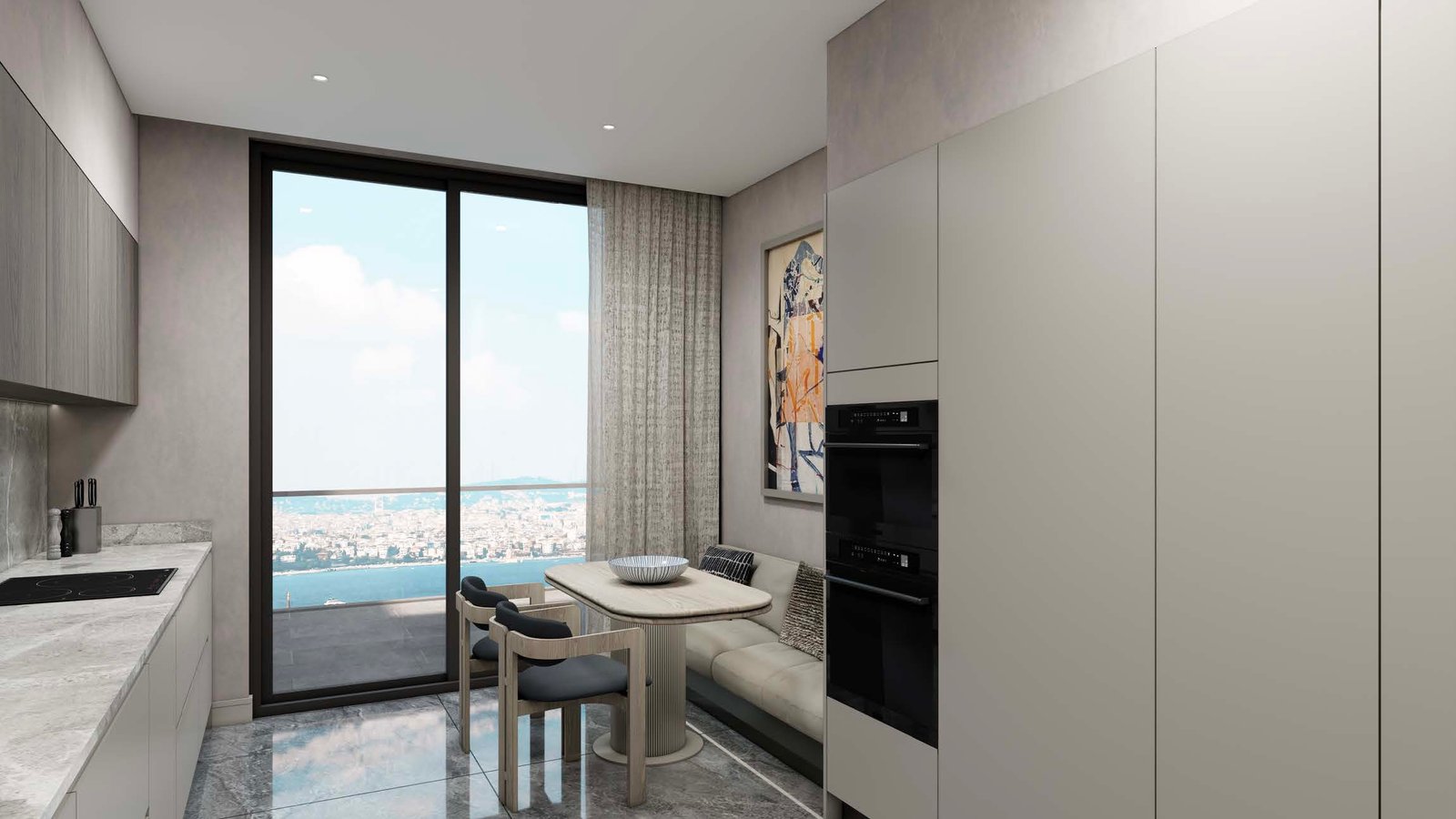 An extraordinary three-bedroom residence at Kempinski Residences Balmumcu offers the rare combination of expansive interiors and an outdoor terrace that opens directly to sweeping views of the Bosphorus and its verdant valleys. This seamless extension of space transforms the home into a sanctuary equally suited to tranquil mornings and elegant evenings spent entertaining against Istanbul’s most iconic backdrop.