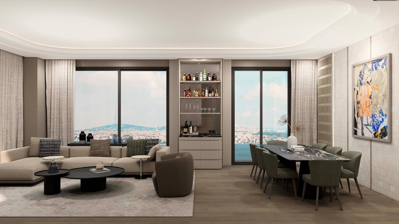 Depending on the residence, views range from Bosphorus panoramas to lush green valley vistas and lanscaped gardens, each offering a serene and private outlook.